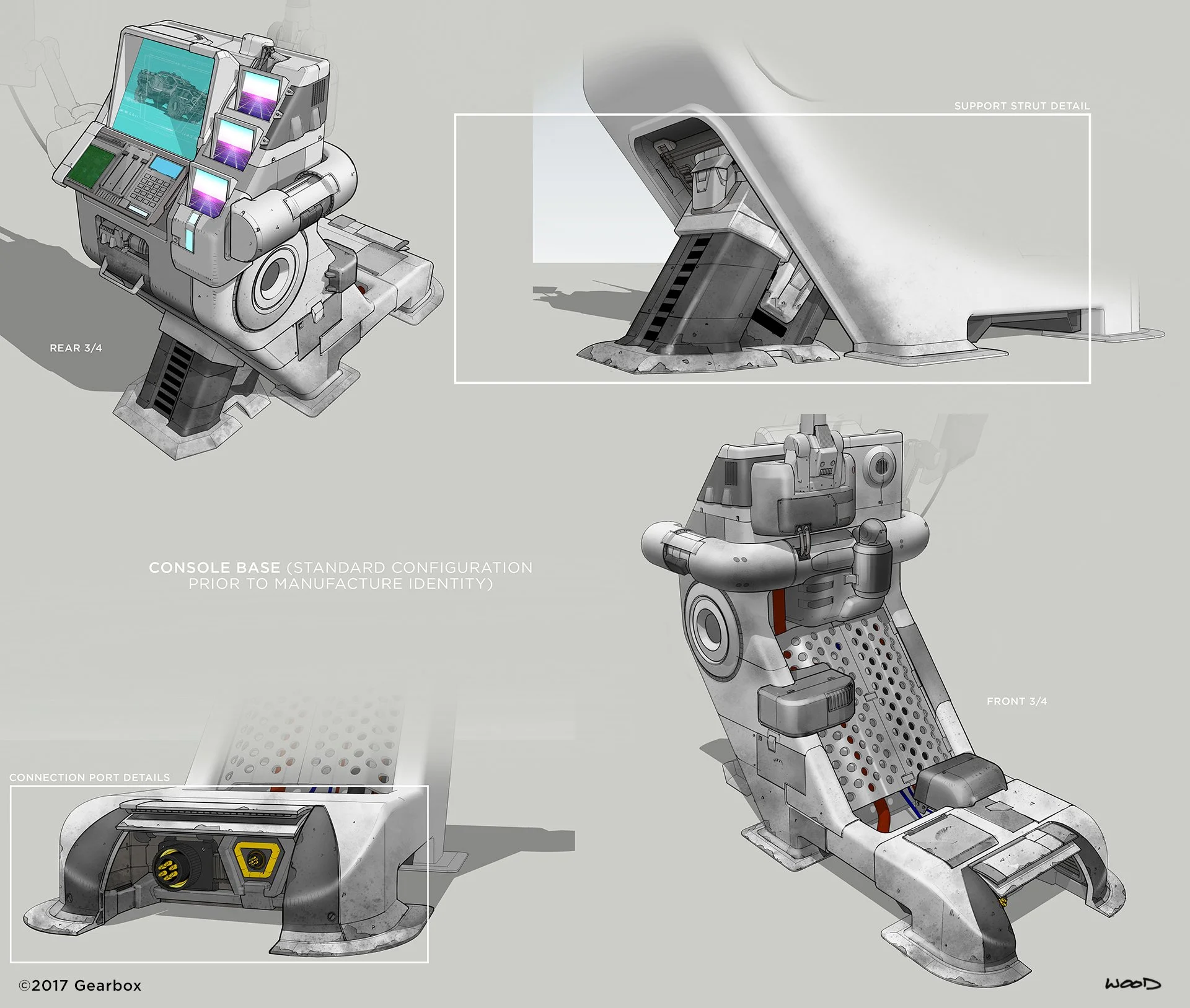 The Gearbox art department assisted the outsourcing studio in the developmental stage. My focus was on the interior Hyperion space station that I designed for the first two games.