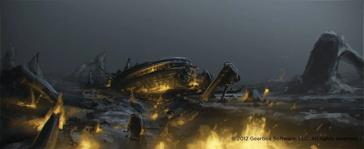 Concurrent with my work on Aliens: Colonial Marines I was helping to define the updated style change for the original Borderlands game. I ended up spending a great deal of time fleshing out that universe.